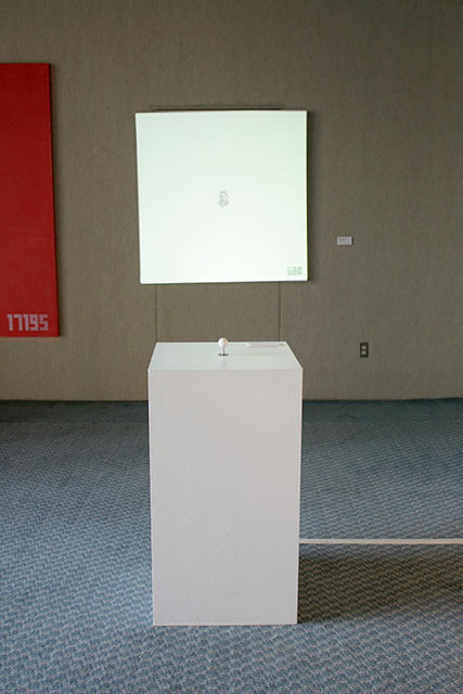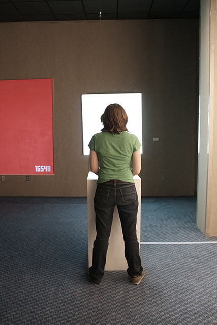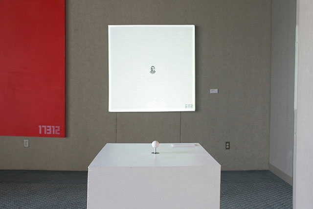 White Painting after Robert Rauschenberg (2008) was created on the day of Rauschenberg's death and revisits his White Painting series from 1951. Composed solely from photographs documenting the production of the white series at Black Mountain College, Rauschenberg's ethereal form appears when summoned on what John Cage referred to as a "landing strips" for light, shadow, and dust. The inclusion of the artist's body transforms the surface of the monochrome into an indeterminate landscape, a silent spectral topography recalling and perhaps performing Cage's 4'33" (1952). Despite the seemingly immense volume of the stage, the lack of distinguishing marks camouflages the player's movement, a disorientating effect common when navigating cartography in early role playing games. When the journey ends Rauschenberg evaporates and the score increases by one.